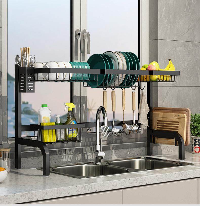 传统沥水架置于桌面,占空间不说,底盘的水渍也要定期清理,不然轻易就发霉有味道。而直接在水槽上方放置的水槽置物架,既可方便拿取碗碟,又能沥干碗碟,不易滋生细菌。除此之外,碗碟沥水架还能充分的利用空间,碗碟被收纳的整整齐齐的,看上去干净又美观。