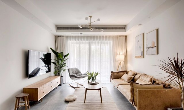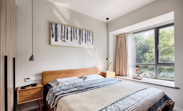 原木家具、植物系的装饰画、柔软的编织物、米色的窗帘,再添加一撮阳光,便是你浓我浓的情意;