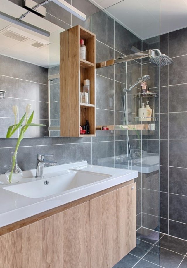 白色的门板搭配以黑色把手,既有对比性又有整体性,换鞋凳与置放区之于实用主义;鞋柜在设计之处就从实用出发,尽可能的将两人每个季节的鞋子进行一个分类:常用和不常用的区分;以及回家换鞋的习惯摆放方式;出汗以后鞋子会有味道又没来得及清洗时如何保持洁净的等的处理方式来设计。