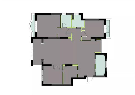从原始户型图可以很明显的看出,入户区域空间面积完全开敞,门厅与起居空间没有功能界限;两个卫生间没有设置分项(主人使用或客人/公共使用);入户左边的房间门正对厨房,空气对流不合理,储纳空间少等问题。