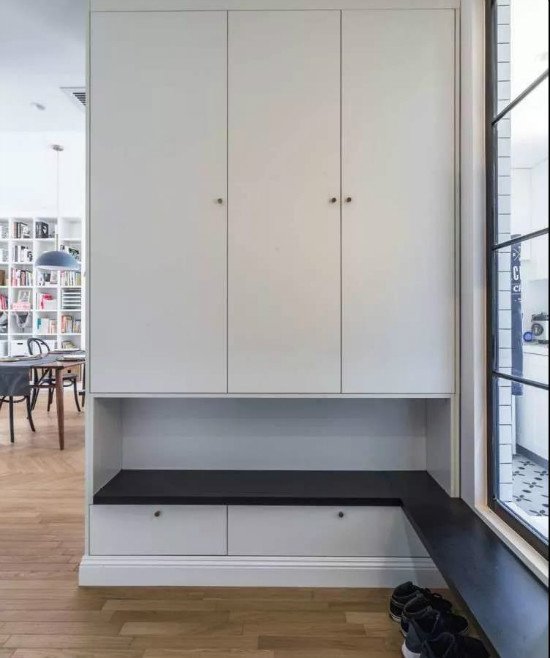 顶天立地的玄关柜(比起格栅、砌墙、买成品玄关柜)柜体作为空间分割的玄关形式更加实用。