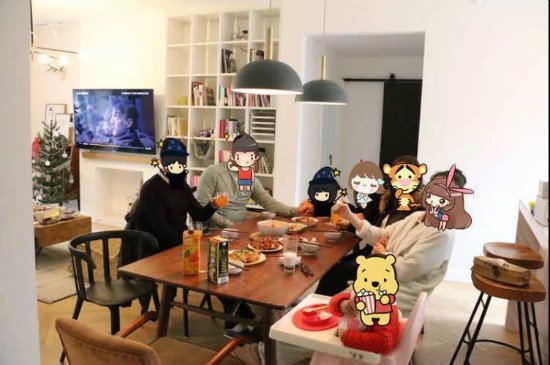 阳台、客厅、餐厨区一线贯通形成了约35平米更开阔的延伸空间可容纳20人的好友聚会不说视觉和使用动线上都更加舒适自然。