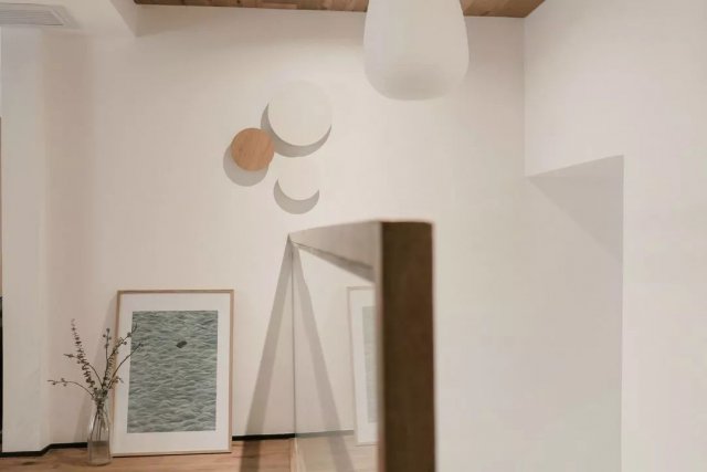 进门口处,设计师利用承重墙的角度做了个隐藏的衣帽间,利用空间的同时也很好的弱化了承重墙的视觉影响。