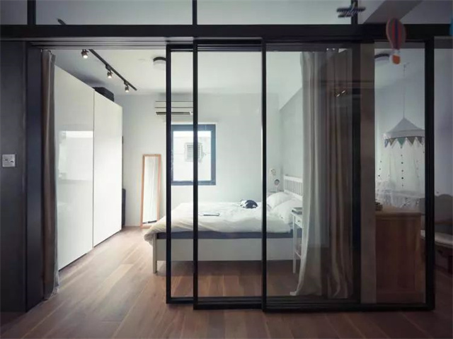 03、 拉帘不够没关系,加上玻璃滑门不占空间隔音又好